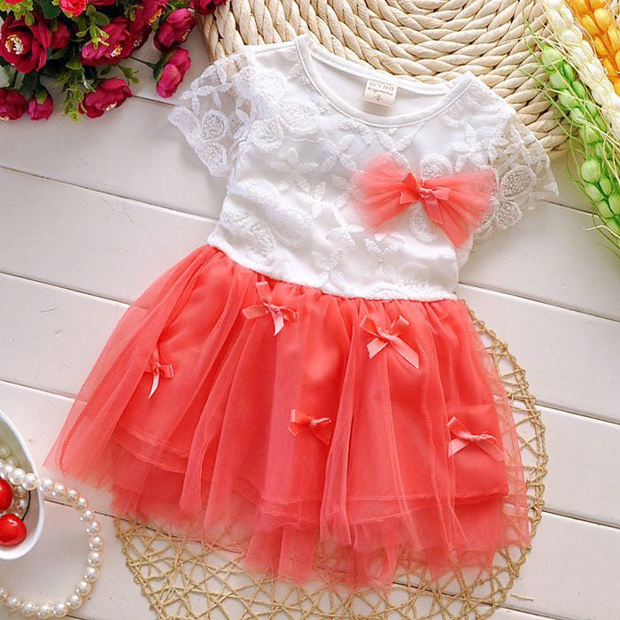 Gorgeous toddler girl knee-length ball gown made with cotton and appropriate for summer season.