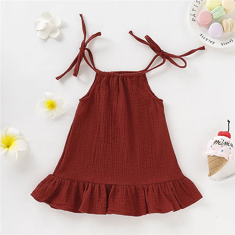 Unleash your little one's adventurous spirit with our breathable cotton slip dress! Perfect for summer, this adjustable solid color halter dress is perfect for your toddler girl's holiday beachwear. Keep her comfortable and stylish in this must-have dress!