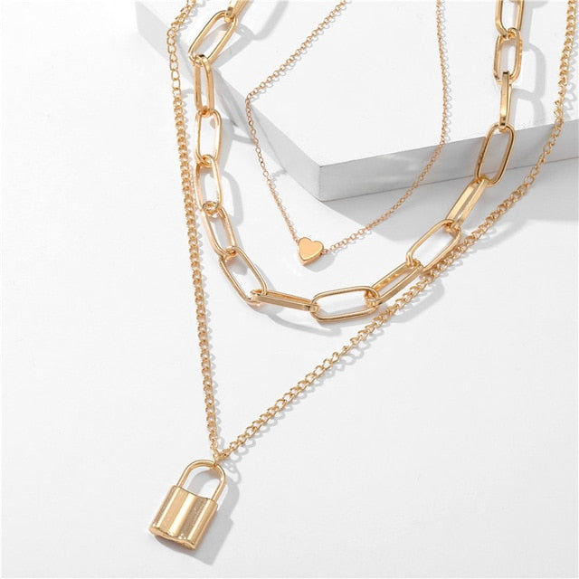 Embrace a bold, confident style with the 17KM Gothtic Gold Lock Chunky Chain Necklace For Women Men Big Chain Unlockable Lock Key Pendant Necklaces Exaggerated Jewelry today!