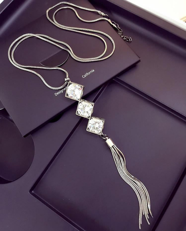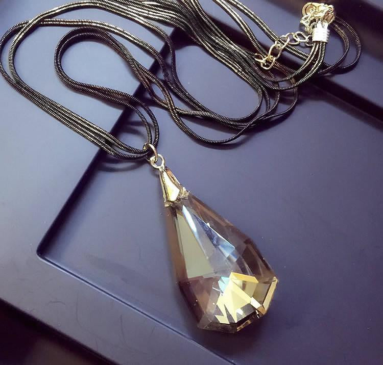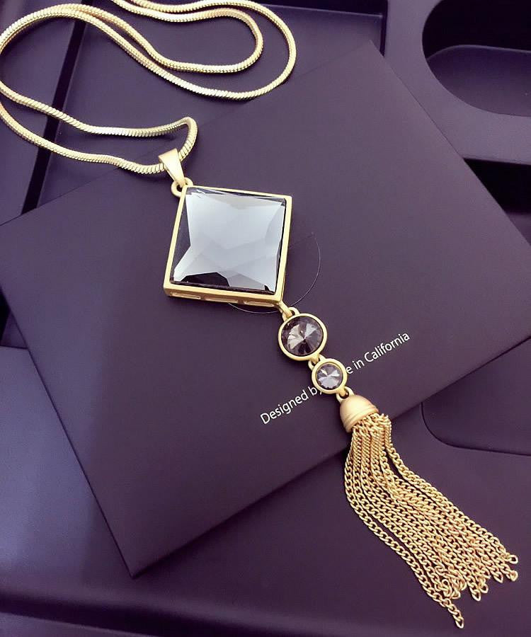 Indulge in the charm and sophistication of the Women Pendant Necklaces The Big Drop Long Paragraph Sweater Chain All-match Decorative Crystal Necklace Pendant. Add this elegant piece to your collection today and showcase your unique style!