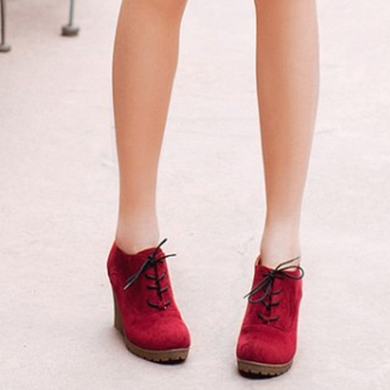 Fashionable and trendy lace-up styled ankle wedges for women which can be perfectly worn during spring and autumn.