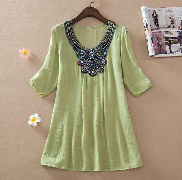 Elevate your wardrobe with our Women Floral Embroidery Plus Size XXXL Loose Blouse Shirts 7 Candy Colors Chiffon Casual Shirt Tops. Perfect for the modern woman, this stunning blouse combines comfort and style, making it an essential addition to your fashion collection. Crafted from high-quality chiffon, this blouse is not only lightweight and breathable but also features exquisite floral embroidery that adds a touch of elegance to your casual look.