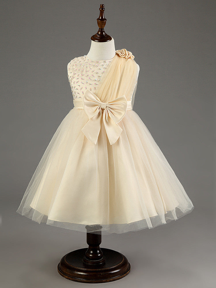This dress is adorned with lovely decorations including bows, flowers, and delicate beading. The included belt adds a touch of sophistication, making it a standout choice for any toddler girl. Available in a variety of vibrant colors such as white, pink, red, rose, purple, and light yellow, you can choose the perfect shade that matches the occasion.