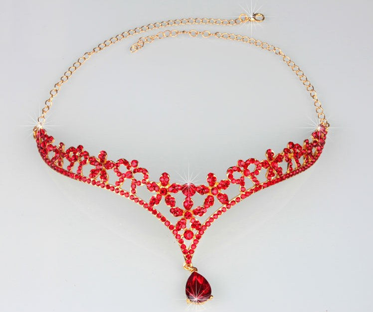 An elegant and exquisite, zinc alloy, plant shaped, white and red colored crystal bridal and wedding tiaras for women.