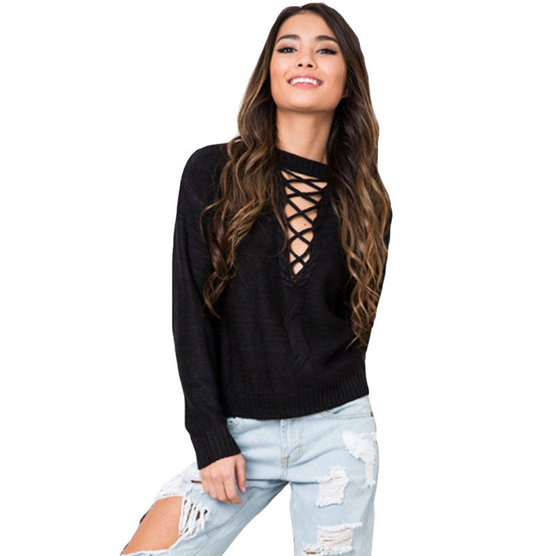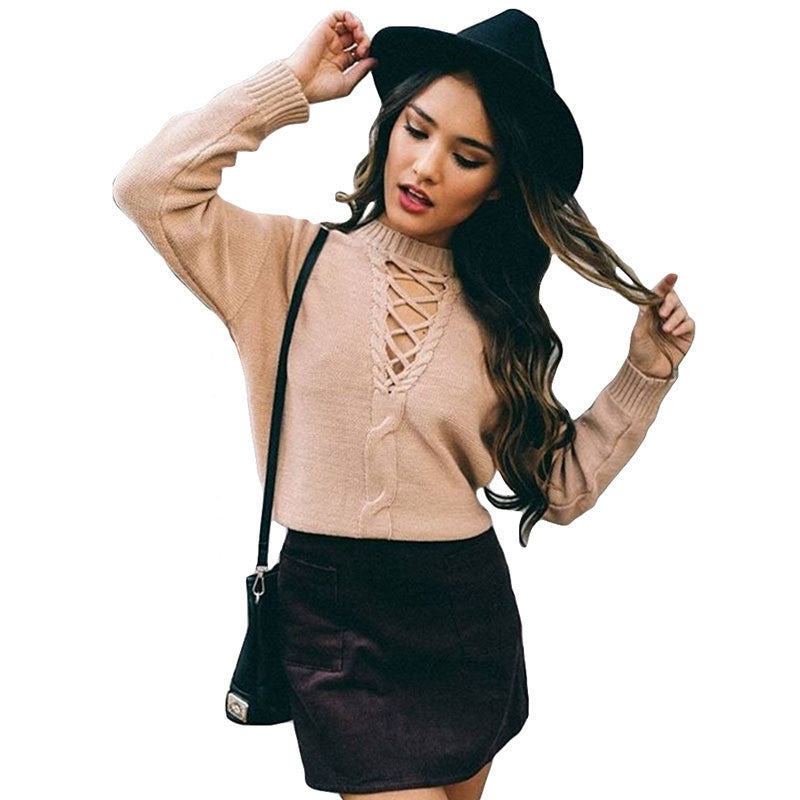Discover the ultimate in cozy chic with our Winter Sweater Pullovers V-neck Lace Up Sweater Kylie Jenner Kardashian Style. This stunning pullover is designed for the modern woman who values both style and comfort. The V-neck design and unique lace-up details elevate this classic winter staple, making it a must-have addition to your wardrobe.