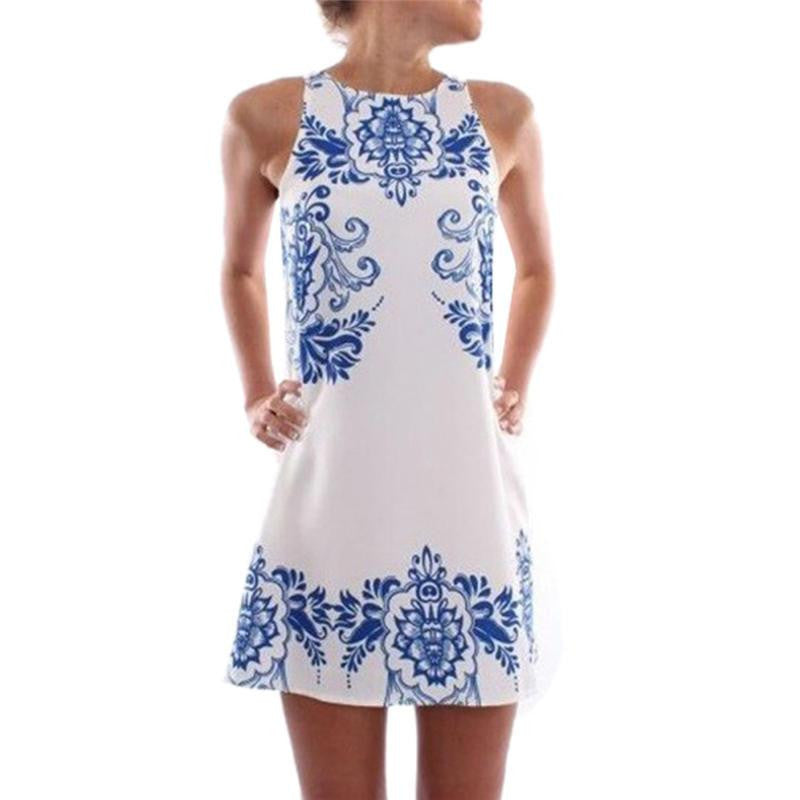 Make this summer unforgettable with the Women Sleeveless Blue And White Porcelain Print Chic Mini Dress Gift KR2. Add it to your cart today and step out in style!
