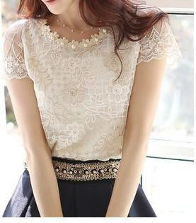 Wear the Women's chiffon shirts Short Sleeve Collar Beading Embroidery O-neck Lace blouse Tops Female Clothing J0569 with confidence and make a statement wherever you go. Don't miss out on this must-have fashion piece; add it to your closet today!