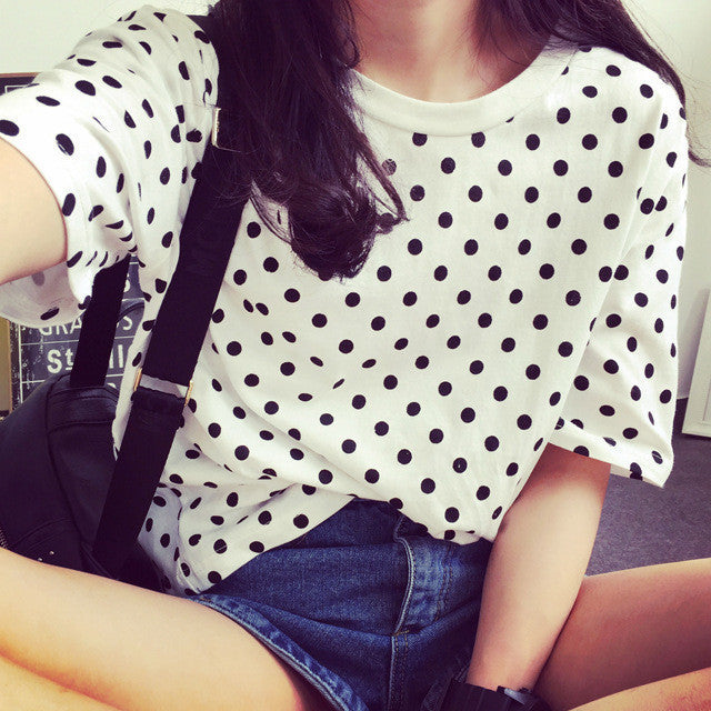 Enhance your wardrobe with this korean kawaii polka dot t shirts women tee shirt poleras harajuku tumblr female tshirt. Don't miss out on this stylish staple that promises to elevate your everyday look! For detailed sizing information, please contact us.