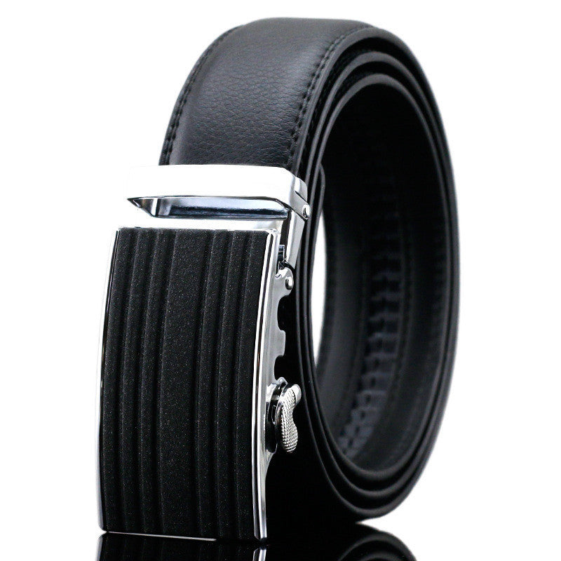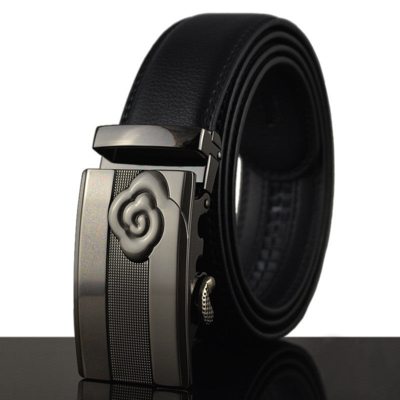 Men brand designer leather belt with automatic buckle that goes well with outfits of different styles and colors.