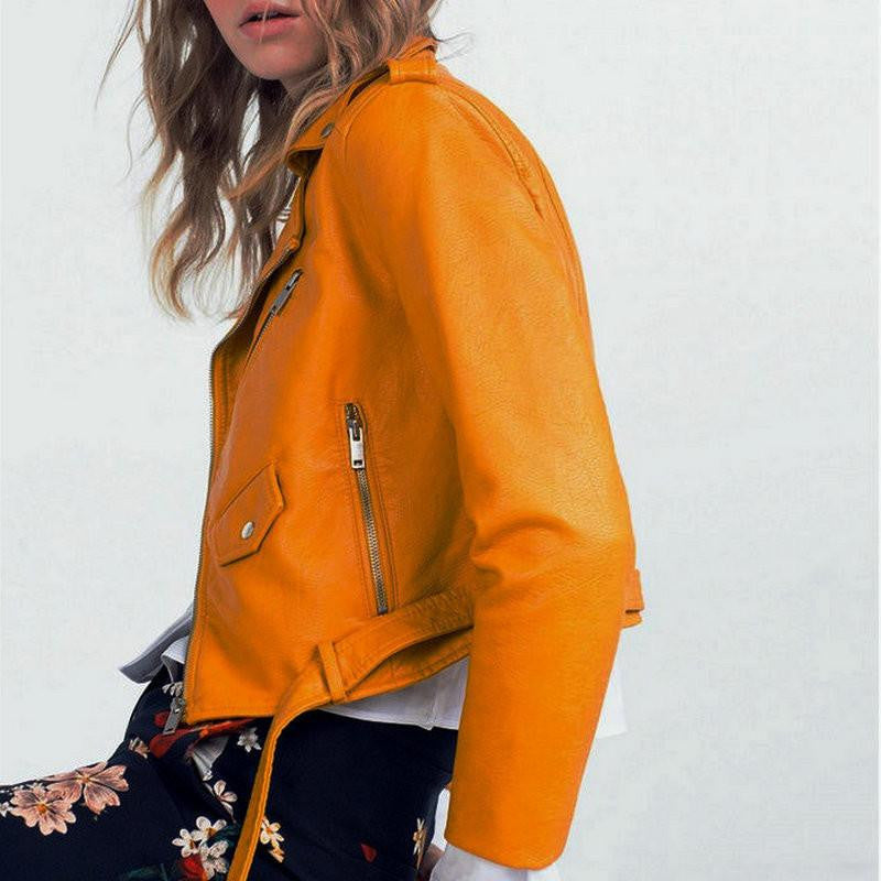 The Women PU Leather Jackets Lady Slim Fit Motorcycle Zipper Black Coat Drop is not just a fashion statement; it's a versatile outerwear piece that complements every wardrobe. Whether you're heading out for a ride, meeting friends, or just enjoying a day around town, this jacket is your go-to choice for staying stylish and comfortable.