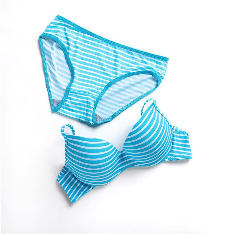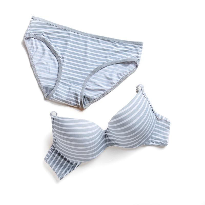 Get this beautifully striped bra set. With padded cups and underwire support. Adjust straps to your comfort with convertible straps. Available in many sizes.