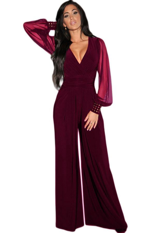 The women jumpsuit 3 Colors Embellished Lantern Sleeve Cuffs Long Mesh Sleeves Jumpsuit is not just a clothing item; it's a fashion statement. Its unique design and high-quality fabric make it a must-have for every modern woman's closet. Don't miss out on the chance to enhance your seasonal wardrobe with this stylish and functional jumpsuit.