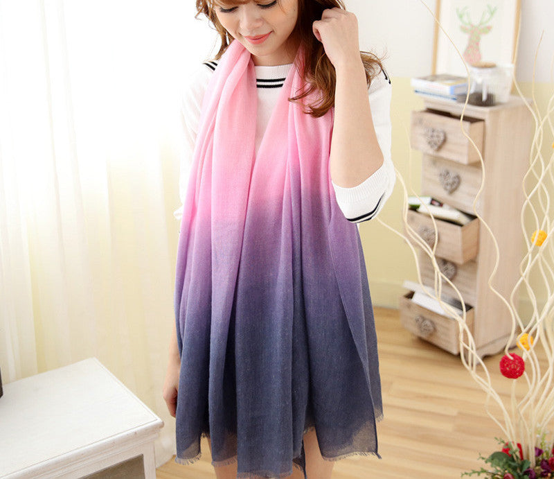 Elevate your winter wardrobe with our Fashion Winter Scarves Women cachecol Gradient scarf Designer Cotton shawls Scarf. This stunning scarf features a unique gradient design, perfect for adding a pop of color to any outfit. Crafted from a luxurious blend of cotton and microfiber, it promises both warmth and comfort during the chilly months.