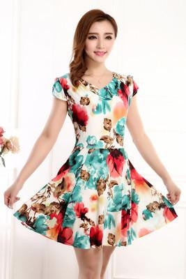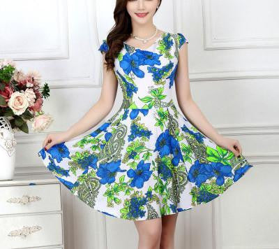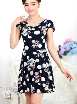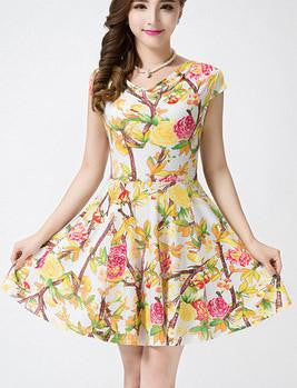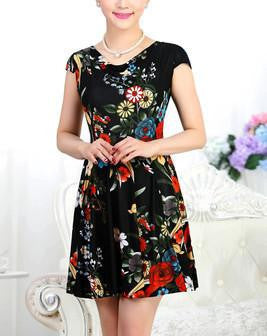 This beautiful floral piece is amazing for the summer. Get this printed a line short above-the-knee dress this summer this regular round neck dress is awaiting your purchase now.