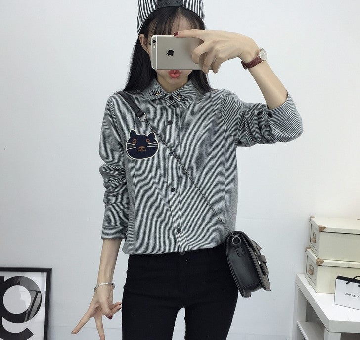 Don't miss out on this fashionable piece—contact us for detailed sizing information, and elevate your casual style with our Women's Shirt Blouse Cat Embroidery Long Sleeve Women Shirt's Casual Tops Size M-XL today!