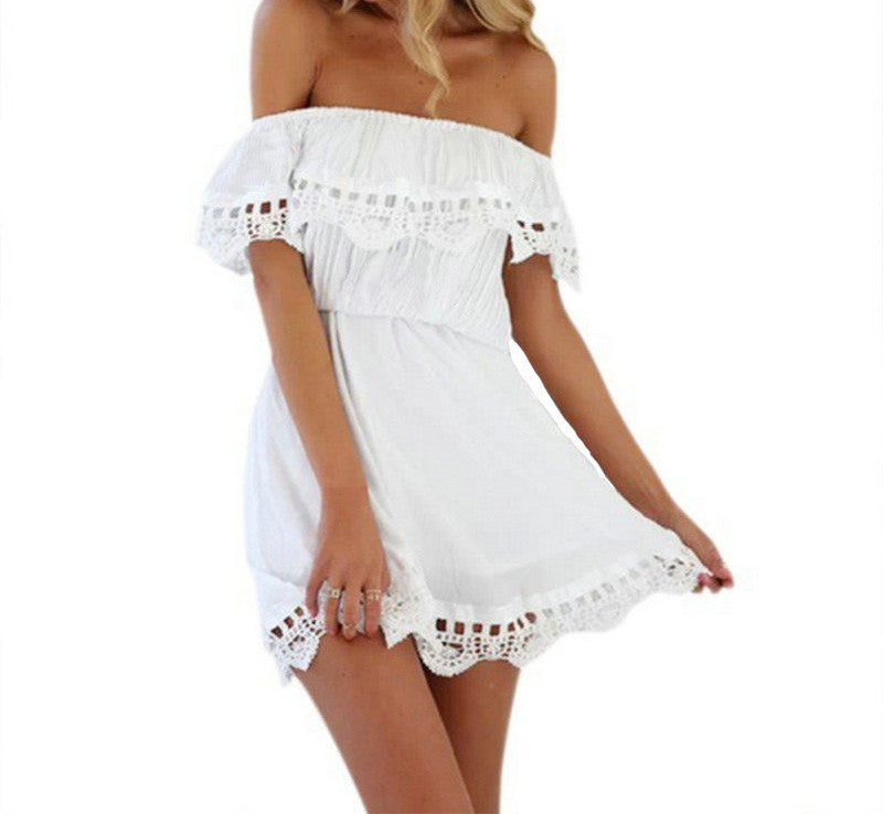 This off the shoulder summer dress is sexy and sporty. the white lace top is very comfortable. Beat the summer days in this stunning mini dress.