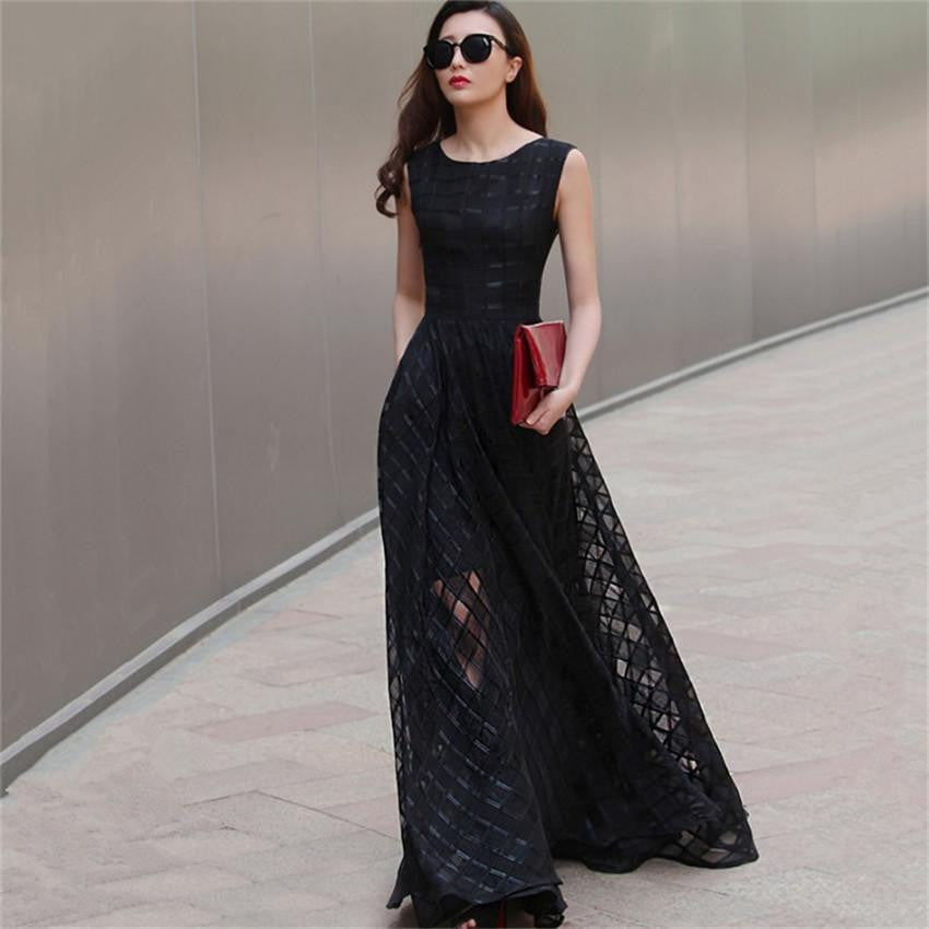 With its sleeveless design and classic O-neck neckline, this Women Summer Dress Elegant Ladies Vintage Black Organza Sleeveless Long Beach Maxi Dress Sundress Vestidos Femininos is perfect for layering with your favorite accessories. Pair it with sandals for a day at the beach or dress it up with heels for an evening event.