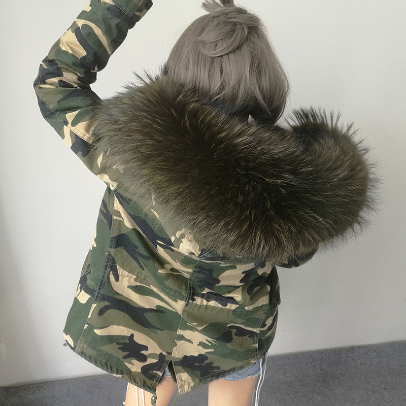 Discover the perfect blend of style and warmth with our Women Winter Army Green Jacket Coats Thick Parkas Plus Size Real Fur Collar Hooded Outwear. Tailored for the modern woman, this jacket offers a chic silhouette that effortlessly combines functionality and fashion. Designed with a luxurious real raccoon fur collar, it not only provides additional warmth but also adds a touch of elegance to your winter wardrobe.