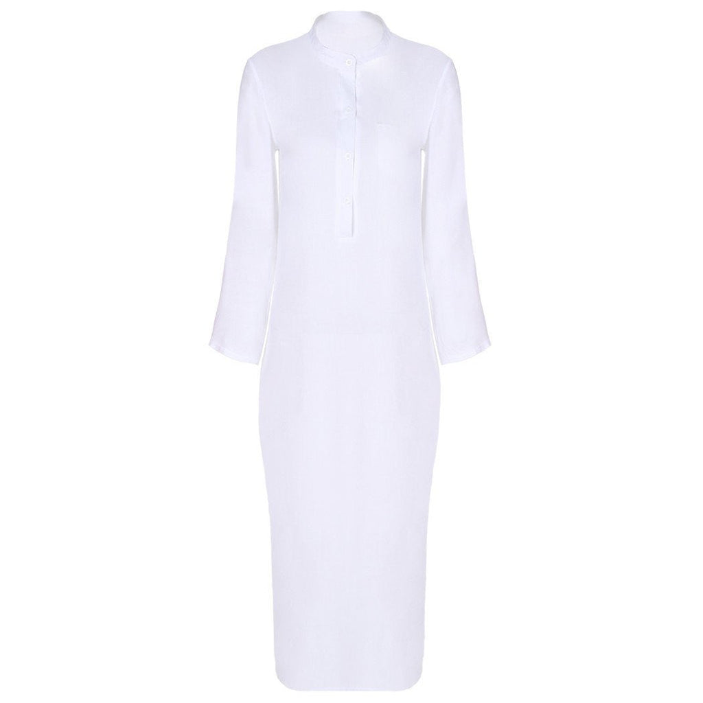 This Shirt Maxi Dress is not just a dress; it’s a versatile piece that can be dressed up or down. Whether you're heading to a casual brunch, a beach outing, or an evening event, this dress effortlessly transitions with your style. The long sleeves provide a touch of warmth during cooler months, while the natural waistline flatters your silhouette.