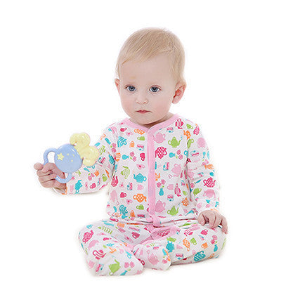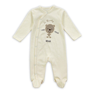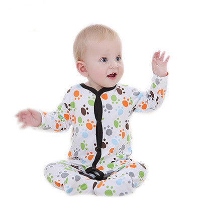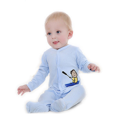 Cartoon inspired style, single breasted, print pattern, O-neck, full length, cotton made unisex baby romper to keep your baby looking cute.