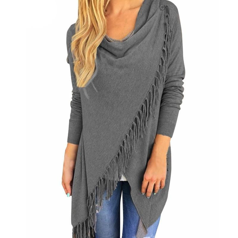 Our Women Tassels Irregular Hem Long Sleeve Blouses Shirts Casual Cardigan Solid Color Plus Size Tops is perfect for pairing with your favorite jeans, leggings, or skirts. Whether you're heading out for brunch or enjoying a relaxed day at home, this versatile cardigan will keep you looking chic and feeling confident.