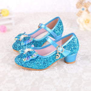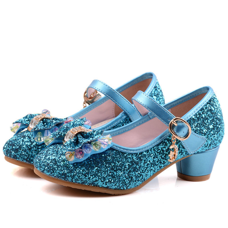 These Spring Kids Girls High Heels For Party Sequined Cloth Blue Pink Shoes Ankle Strap Snow Queen Children Girls Pumps Shoes not only make your child feel like royalty but also ensure they step out in style. Don't miss out on this stylish piece that will have every little girl feeling confident and fashionable!