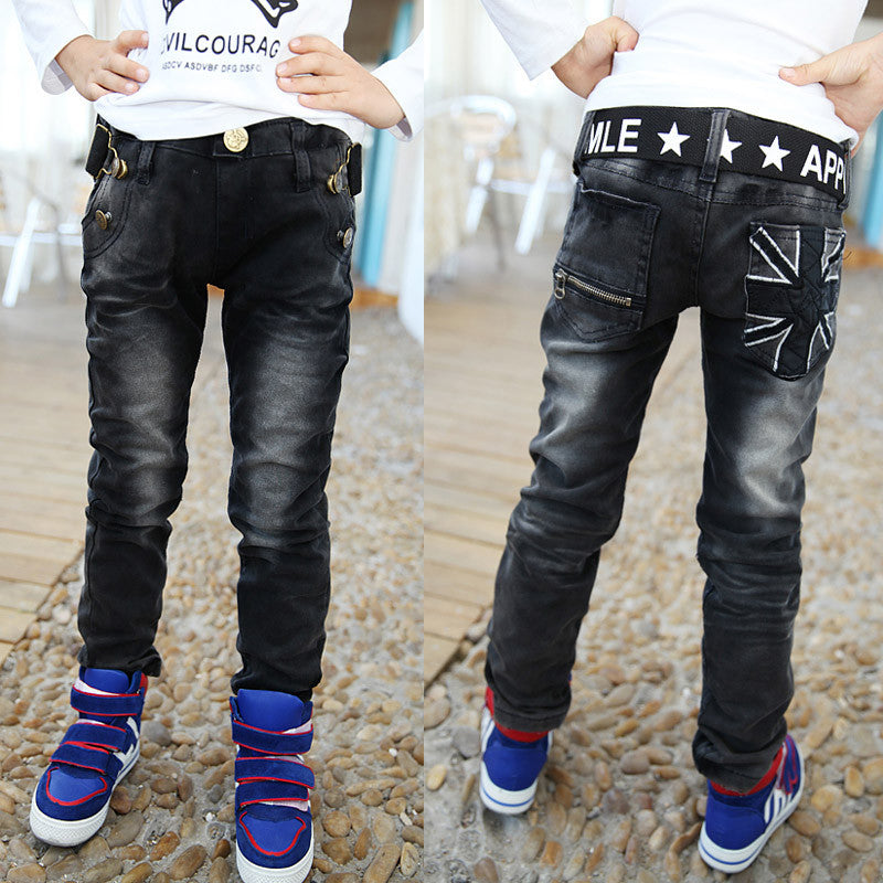Elevate your child's style with the perfect combination of comfort and fashion with our Spring boys pants black color with white print high boys kids jeans for children 2 to 12 years old B141!