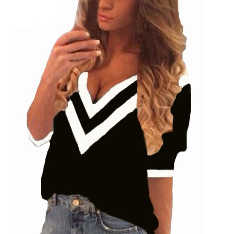 Don't miss out on the opportunity to look effortlessly stylish. Grab the Women Tee Tops Casual Deep V Neck Splicing Blouses Ladies Loose 3/4 Sleeve Shirts US Plus Size Pullover today and redefine your casual outfits!