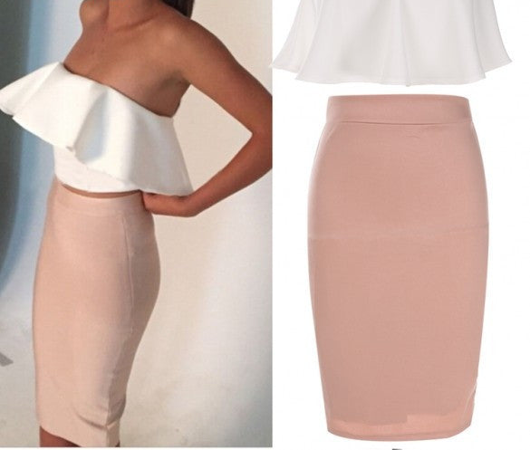 This dashing of the Soul shoulder strapless ruffle crop top and pencil skirt as a two-piece suit. This sexy pencil skirt is ideal for your event.