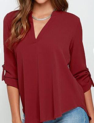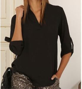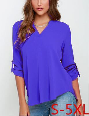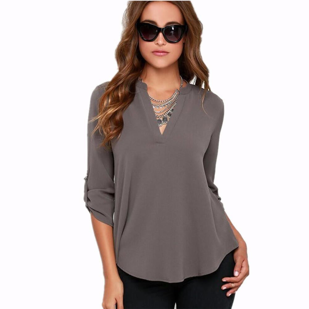 The V-neck Slim chiffon Women's Blouses shirts plus size clothing body is not just a piece of clothing; it's a confidence booster. The solid pattern allows for easy pairing with any outfit, whether you opt for jeans for a casual look or dress pants for a more polished appearance. You can easily transition from a day at the office to a night out with friends.