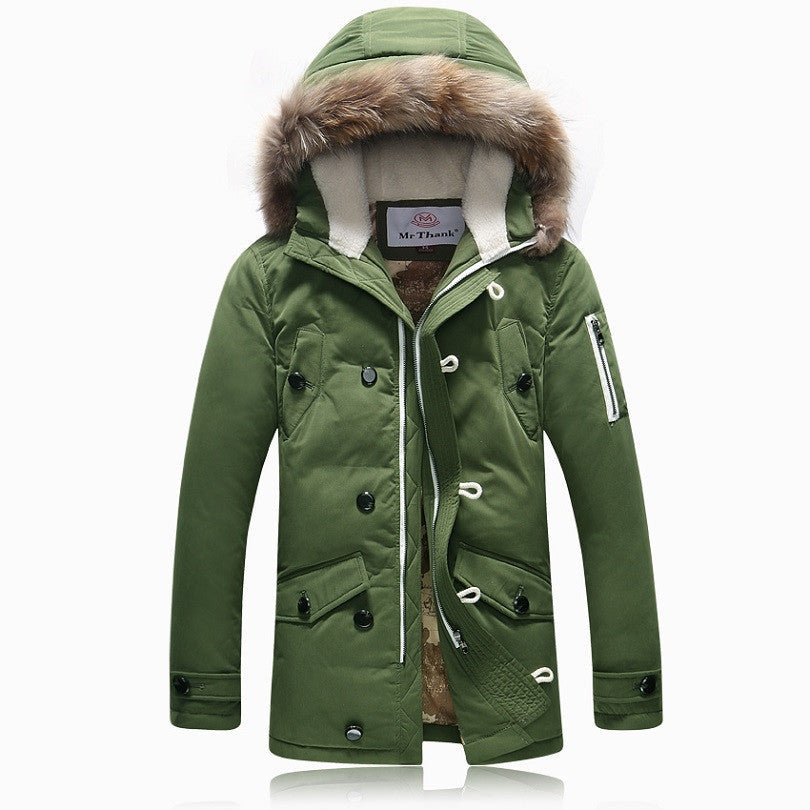 High quality winter jacket for men. Complete warmth is assured because this nice jacket comes with a fur hood.