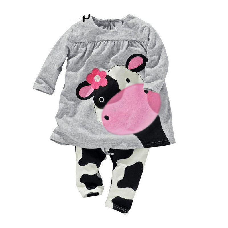 Introducing our delightful winter baby girl clothes casual long-sleeved T-shirt+Pants suit Tracksuit the cow suit of the girls, designed to keep your little one warm and stylish throughout the chilly season. This charming outfit features a cozy long-sleeved T-shirt paired with full-length pants, perfect for a casual day out or a cozy day indoors.