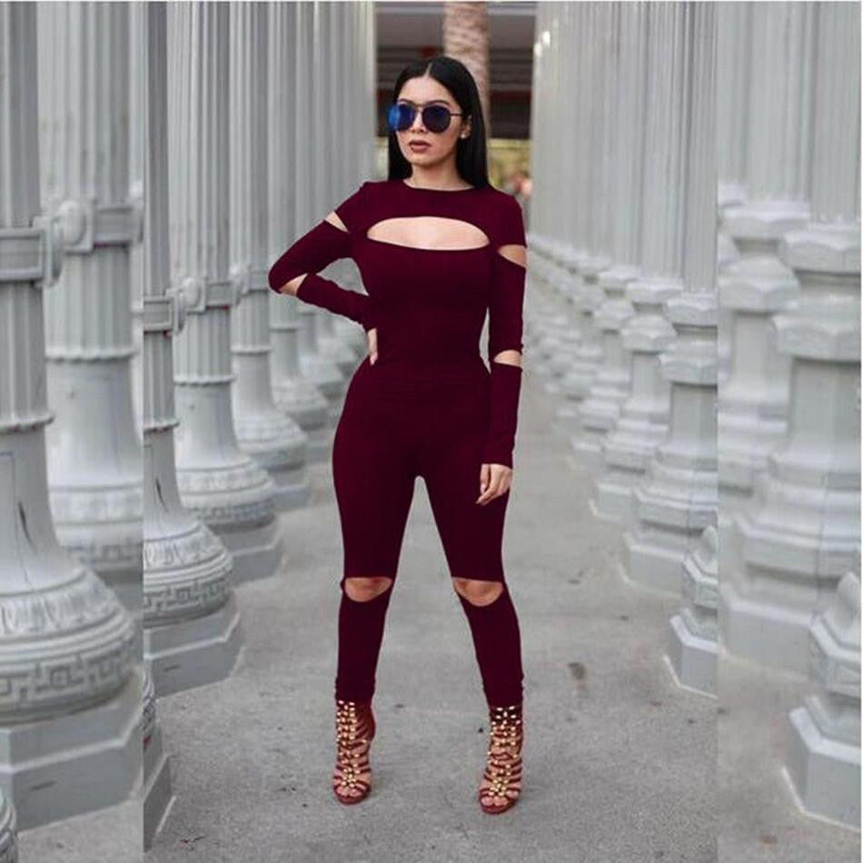 Introducing the Women Bodycon Jumpsuit Long Sleeve Hollow Out Fahion Club Overalls Bodysuit Rompers Womens Jumpsuits, an essential addition to your seasonal wardrobe. This stylish jumpsuit is designed for the fashion-forward woman who loves to make a statement while maintaining comfort. With its unique hollow-out details and form-fitting design, this jumpsuit effortlessly combines elegance with a trendy flair.