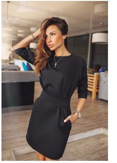 The broadband waist sexy little black dress is a casual comfortable dress. With two side pocktes and solid color you can be confident in this piece.