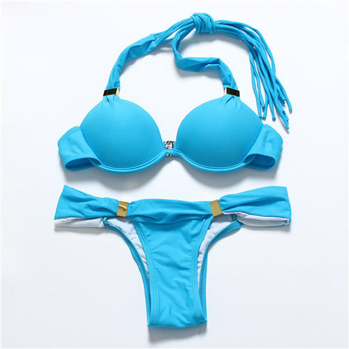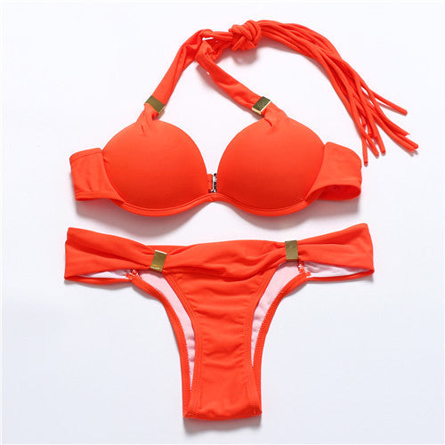 Crafted from high-quality Spandex and Nylon, our Women Halter Push Up Brazilian Neon swimsuits are designed for durability and comfort. This stylish swimwear fits true to size, allowing you to confidently select your normal size. With included padding, you can enjoy added support without sacrificing style.