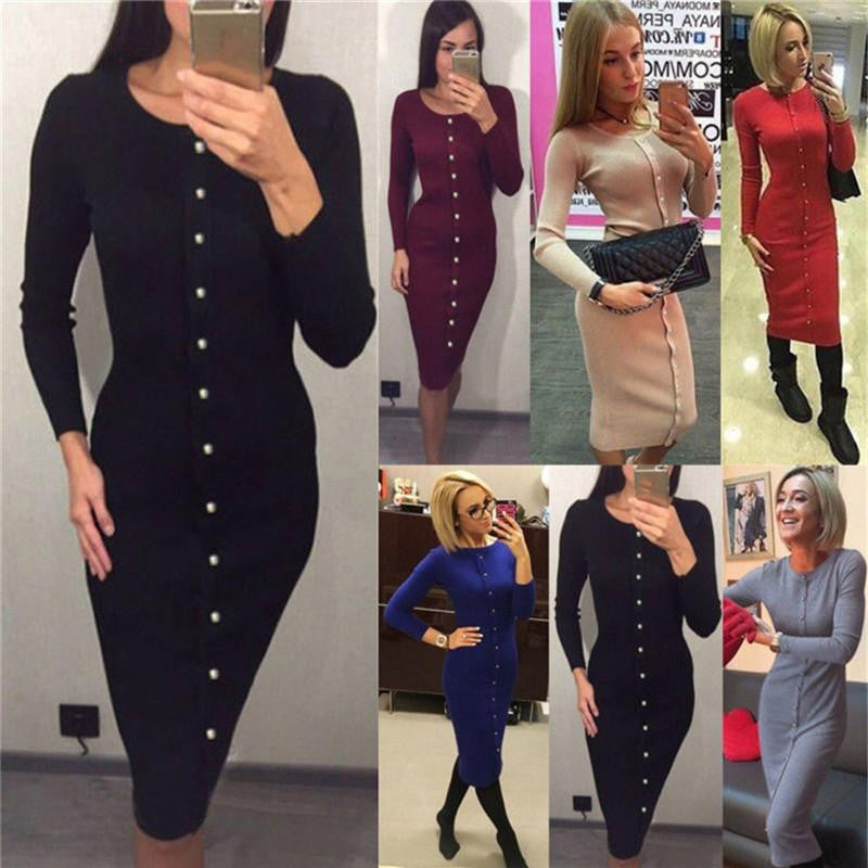 Introducing the Women Spring Autumn Button Knit Long Sleeves Bandage Dress Solid Long Bodycon Sweater Dress Package Hip Long Dress Vestidos, the ultimate wardrobe essential for the transitional seasons. This stunning sweater dress combines comfort and style, making it perfect for casual outings, evening parties, or cozy brunch dates. Crafted from high-quality knitted cotton, this dress offers a flattering fit that enhances your silhouette while ensuring all-day comfort.