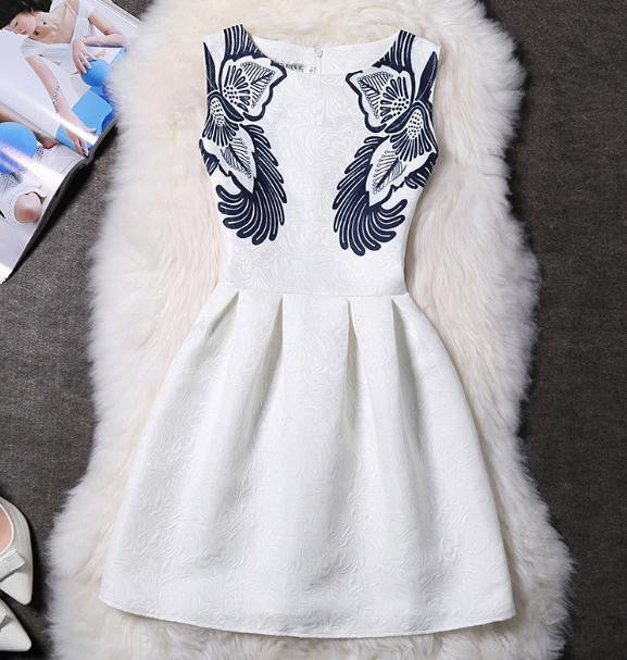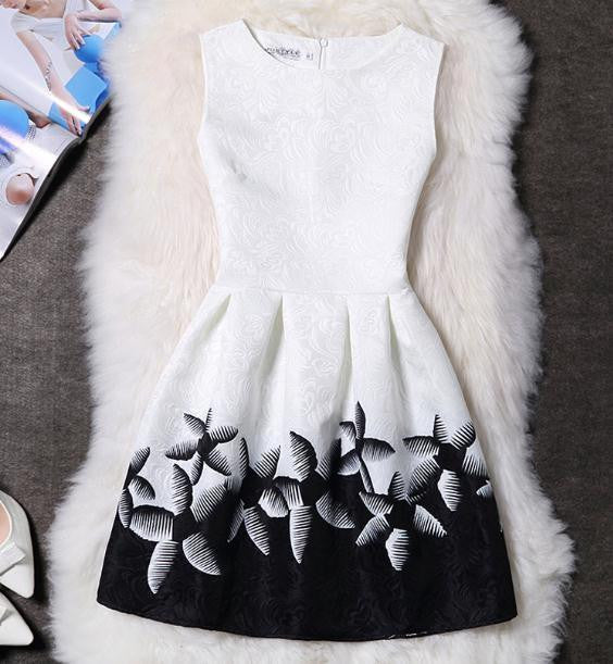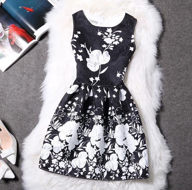 Look absolutely stunning and sexy in this beautiful printed floral dress. This dress accentuates your waistline with a nstural neckline and sleeveless look. Look and stunning in this knee length piece.