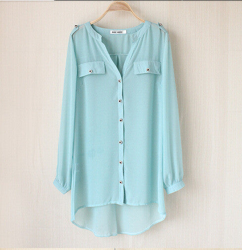 For any further inquiries regarding sizing or style, please don’t hesitate to contact us. Transform your look today with the Women Long Casual V-neck Chiffon Shirts Female Blouses er and embrace elegance like never before!