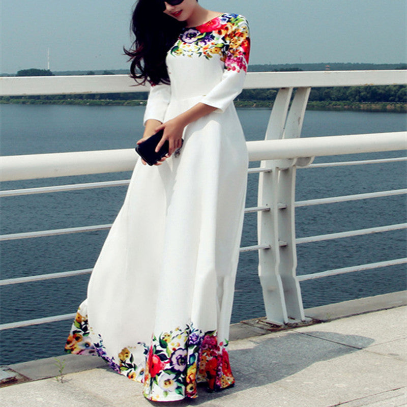 Whether you're dressing up for a special occasion or looking for an everyday outfit, our Women White Long Dress O-Neck Half Sleeve Floor-Length Fashion Prints Casual Summer Dresses is your go-to choice. Its versatility, comfort, and stunning design make it a must-have addition to your summer wardrobe.