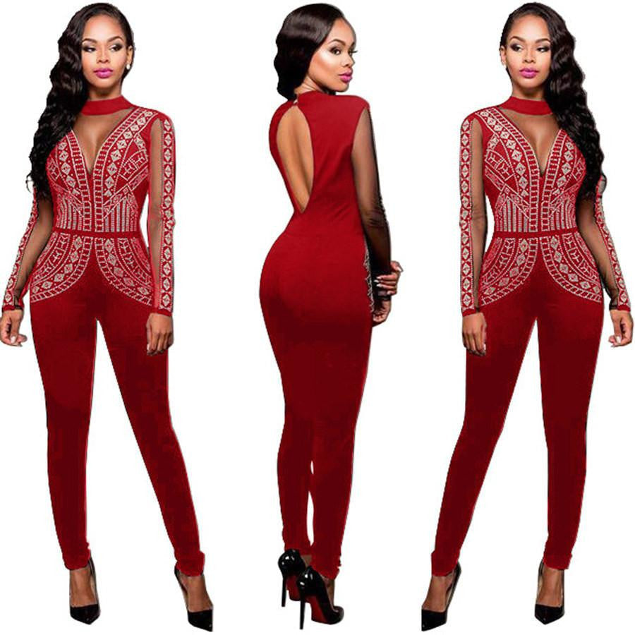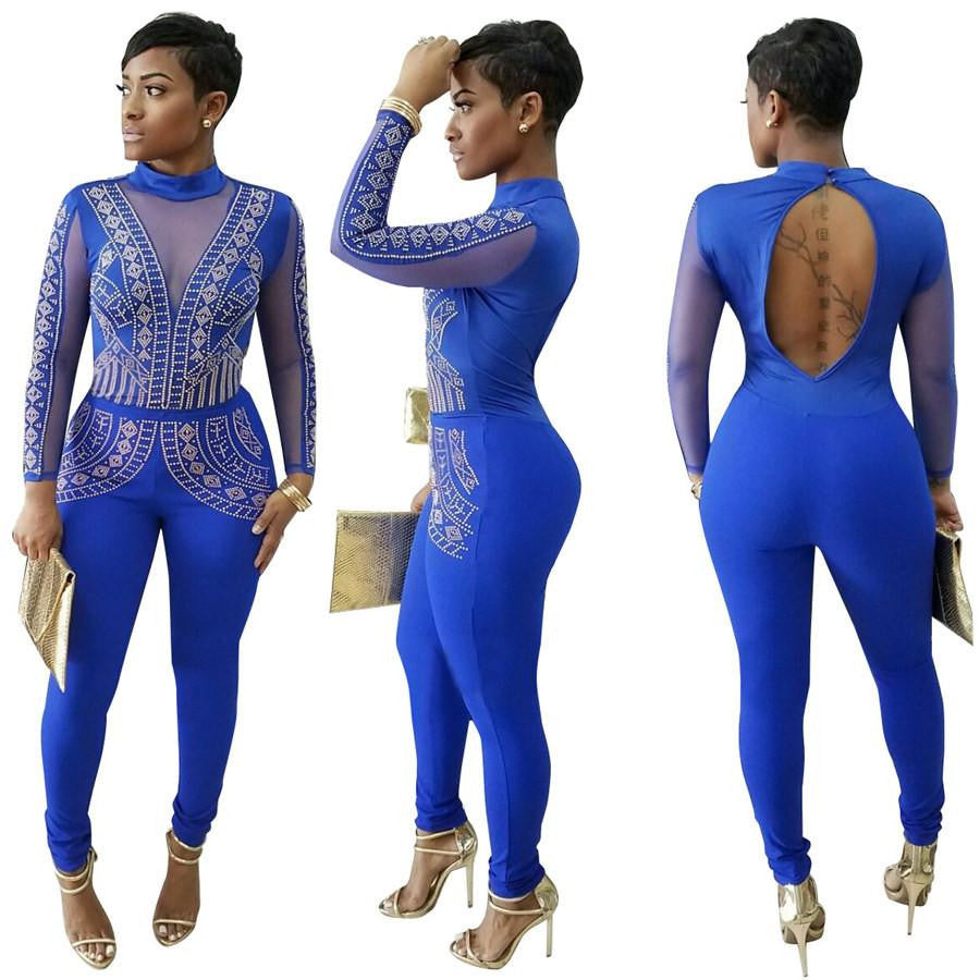 This Womens Rompers Club Party Black Red blue O-neck Drilling Long Mesh Sleeves Bodycon Jumpsuit Plus Size is perfect for a range of events, from glamorous parties to casual gatherings. Pair it with your favorite heels and accessories for an unforgettable look.