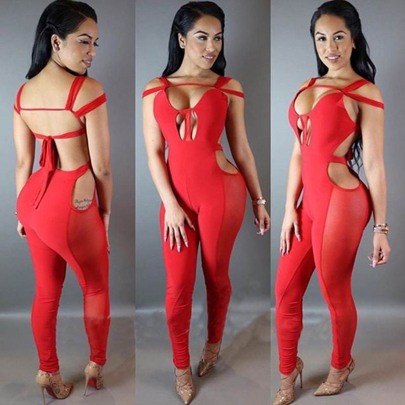 Introducing the Backless Mesh Patchwork Playsuit V-Neck Bandage Jumpsuit, the ultimate outfit for the modern woman who wants to make a lasting impression. This stunning jumpsuit combines elegance and edginess, featuring a captivating backless design and chic mesh patchwork that sets it apart from ordinary playsuits. Perfect for clubs, parties, or any special occasion, this piece is sure to turn heads.