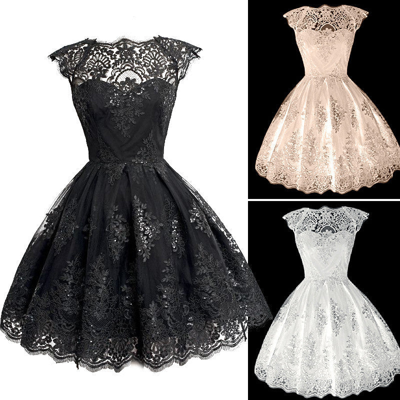 Elevate your wardrobe with the 2017 Fashion Women Clothing Elegant ShortSleeve Black/White Lace Dress Vestidos Formal Wedding Mini Tutu Party Dresses Q2253 today and turn heads wherever you go!