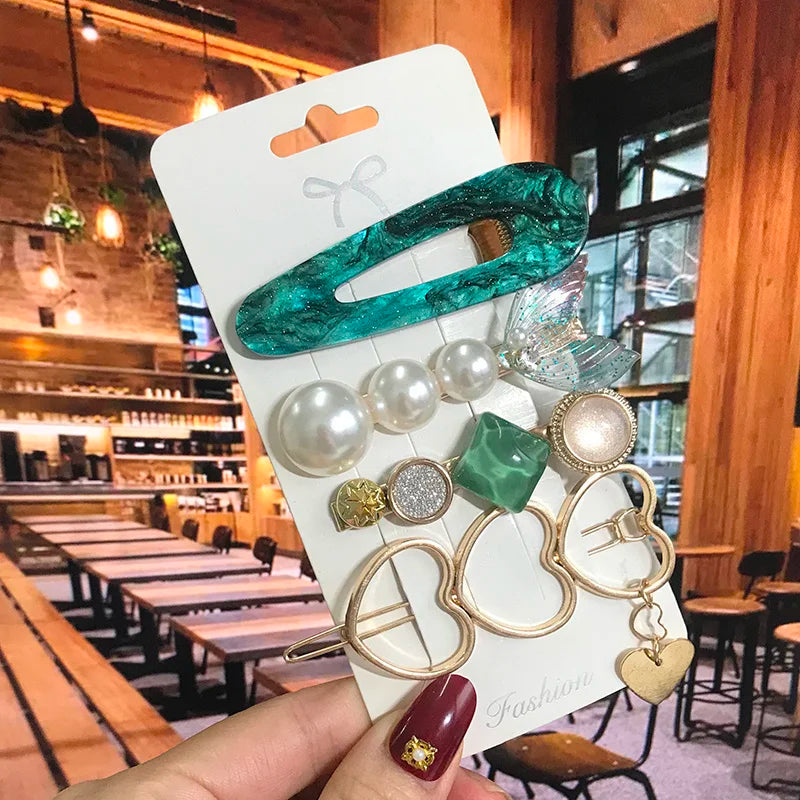 Enhance your hairstyle with our Pearl Crystal Acrylic Hair Clips Set for Women Retro Geometric Barrettes Hairpin Girl Hair Accessories Fashion Jewelry. This exquisite collection features stunning geometric designs that seamlessly blend vintage charm with contemporary elegance, making it a must-have for any fashion-forward woman. Each hair clip is crafted from high-quality acrylic and adorned with sparkling pearls and crystals, ensuring durability and a radiant finish.