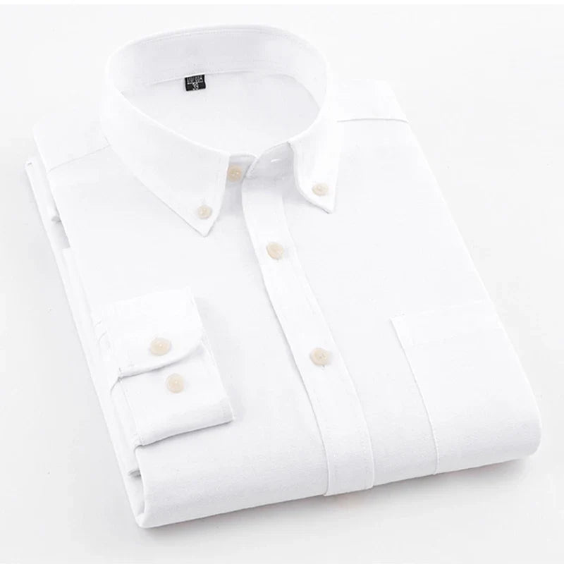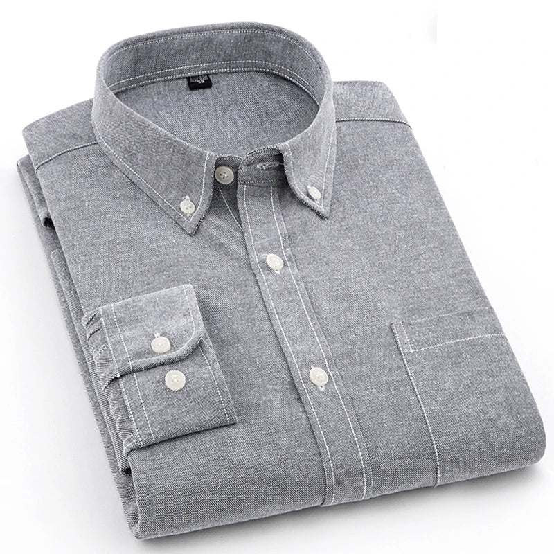 Upgrade your style game with this Men's Oxford Cotton Fabric Shirt! Made of high-quality cotton fabric, this long sleeve shirt features a classic polo neck design and a solid color that exudes confidence and sophistication. Perfect for business or casual wear, this shirt is made to elevate your look and make a bold statement wherever you go.