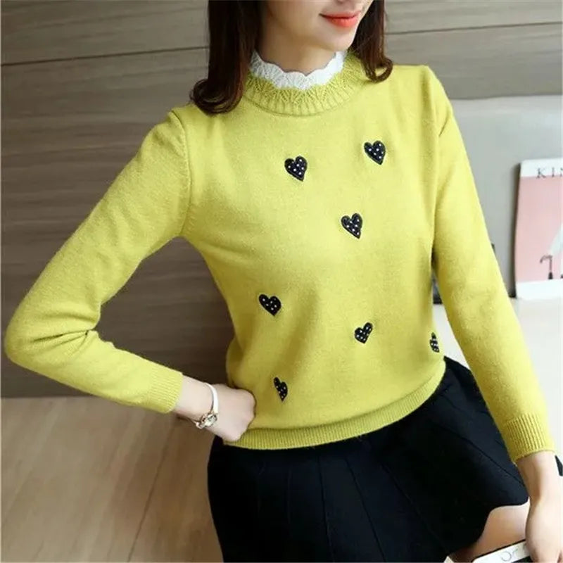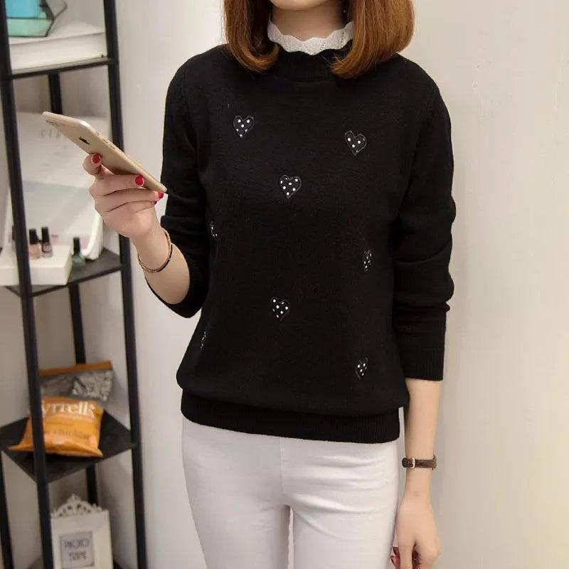 The charming embroidery adds a playful touch, making this knit sweater an eye-catching addition to your collection. The loose fit and O-neck collar provide a relaxed silhouette, ensuring you stay comfortable while looking effortlessly chic. Whether you're heading to the office or enjoying a casual day out, this versatile sweater complements any outfit.