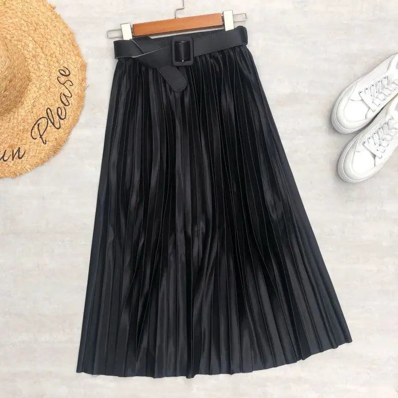 Embrace your daring side with our High Waist Elegant Stain Pleated Skirt. Featuring a belted design and mi-long umbrella shape, this skirt adds a touch of sophistication to any outfit. Perfect for spring and summer, it's a must-have for those who love taking risks in their fashion choices!
