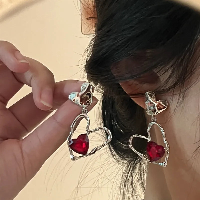 Introducing the exquisite Red Crystal Stone Dangle Earrings Simple Vintage Gothic Pearl Heart Pendant Earring Ear Drop, the perfect accessory to elevate your jewelry collection! These stunning earrings combine a chic vintage design with a gothic flair, making them ideal for adding a unique touch to any outfit. Crafted from high-quality zinc alloy, these earrings feature a dazzling red crystal stone that catches the light beautifully, ensuring you stand out in every occasion.