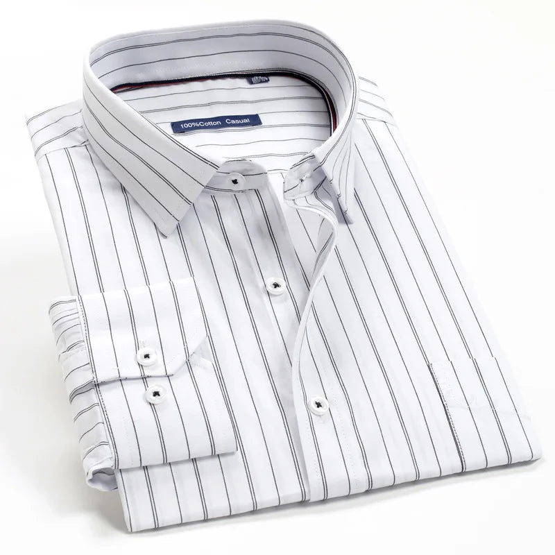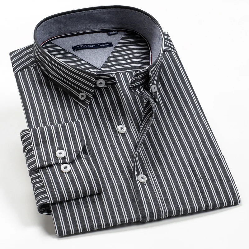 This men's blue striped shirt Men's loose cotton plaid long sleeve shirt Large is suitable for all seasons, making it a practical choice. Pair it with jeans for a casual look or dress it up with chinos for a more polished appearance.