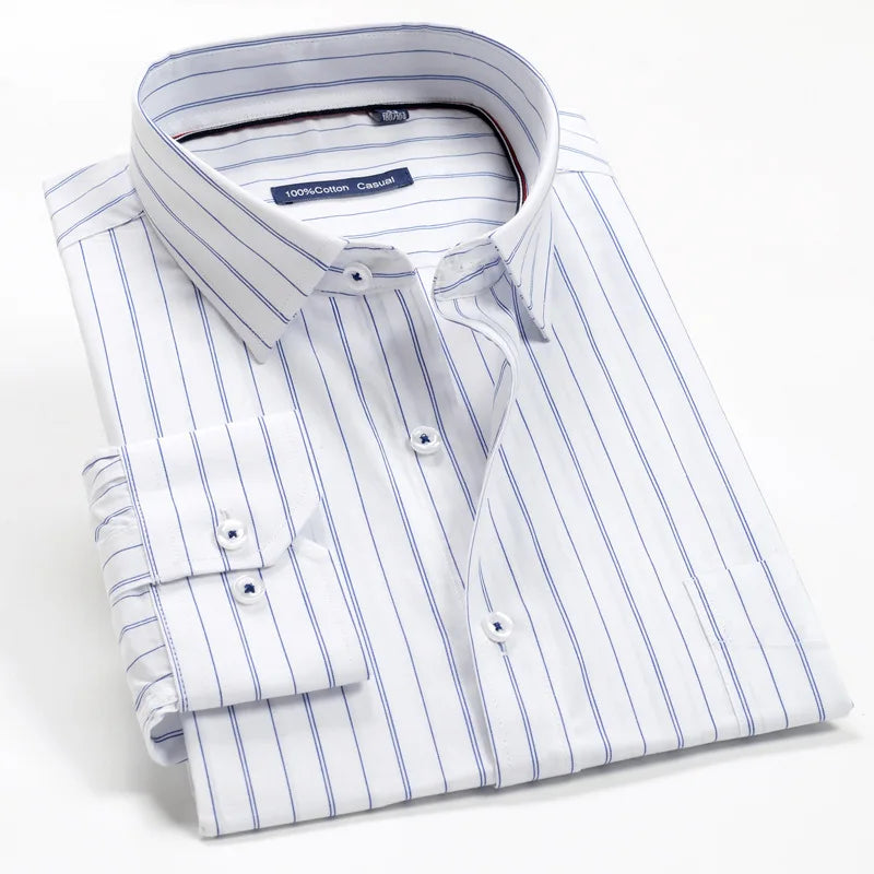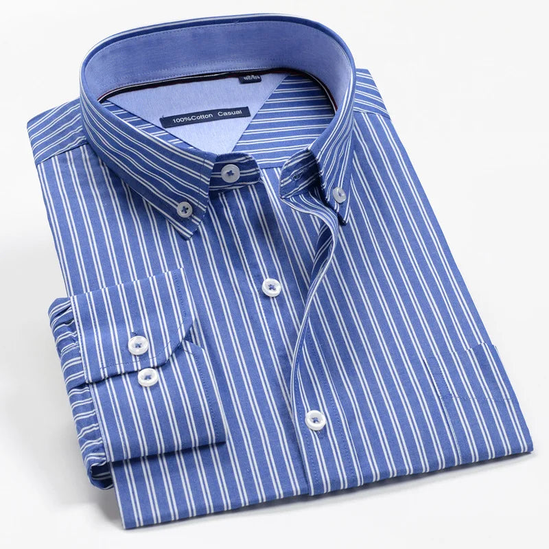 Discover the ultimate blend of style and comfort with our men's blue striped shirt Men's loose cotton plaid long sleeve shirt Large. This shirt is designed for the modern man who values both aesthetics and practicality. Crafted from soft, breathable cotton, it ensures all-day comfort while making a bold fashion statement. The striking blue stripes paired with a classic plaid design make it a versatile addition to any wardrobe.