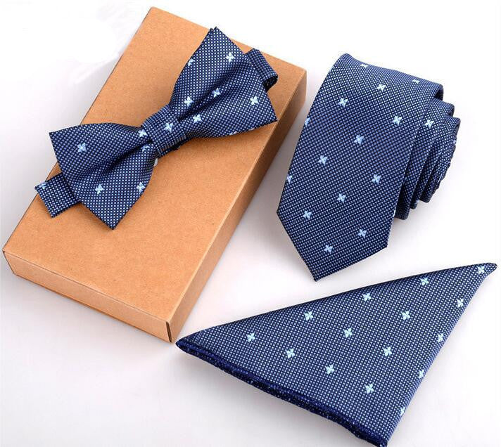 Elevate your style with our 3 PCS Slim Tie Set Men Bow Tie and Handkerchief Bowtie Necktie Cravate. This exquisite ensemble is perfect for any occasion, ensuring you stand out with elegance and charm. Whether it’s a wedding, business meeting, or a night out, this tie set adds a touch of sophistication to your outfit. Crafted with precision, this set includes a sleek necktie, a stylish bow tie, and a coordinating handkerchief, making it the ultimate accessory for the modern gentleman.